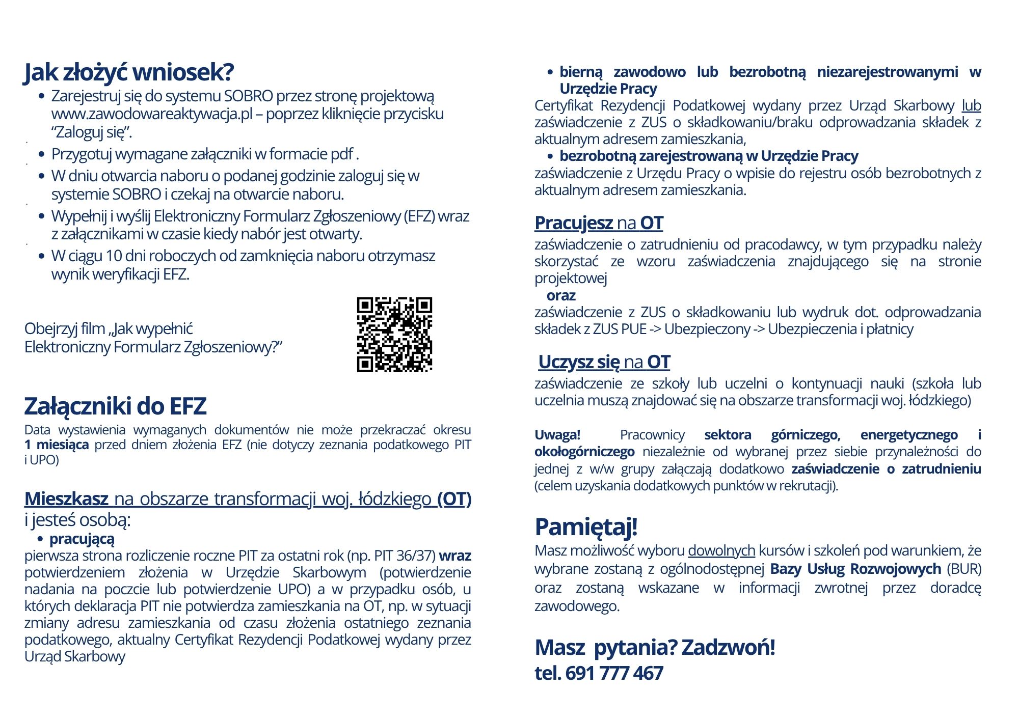 Jeżeli jesteś osoba dorosłą i pracujesz lub mieszkasz lub się uczysz na obszarze transformacji województwa łódzkiego możesz skorzystać z dofinansowania na kursy lub szkolenia pod warunkiem, że: