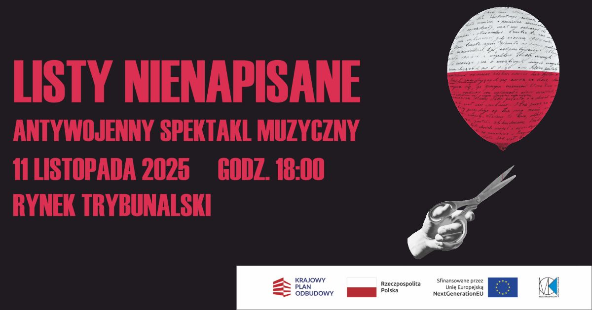 Wspólnie z Miejskim Ośrodkiem Kultury zapraszamy na wyjątkowe wydarzenie, które porusza serca i sumienia! Spektakl „Listy Nienapisane" to więcej niż koncert – to artystyczny manifest na rzecz pokoju.