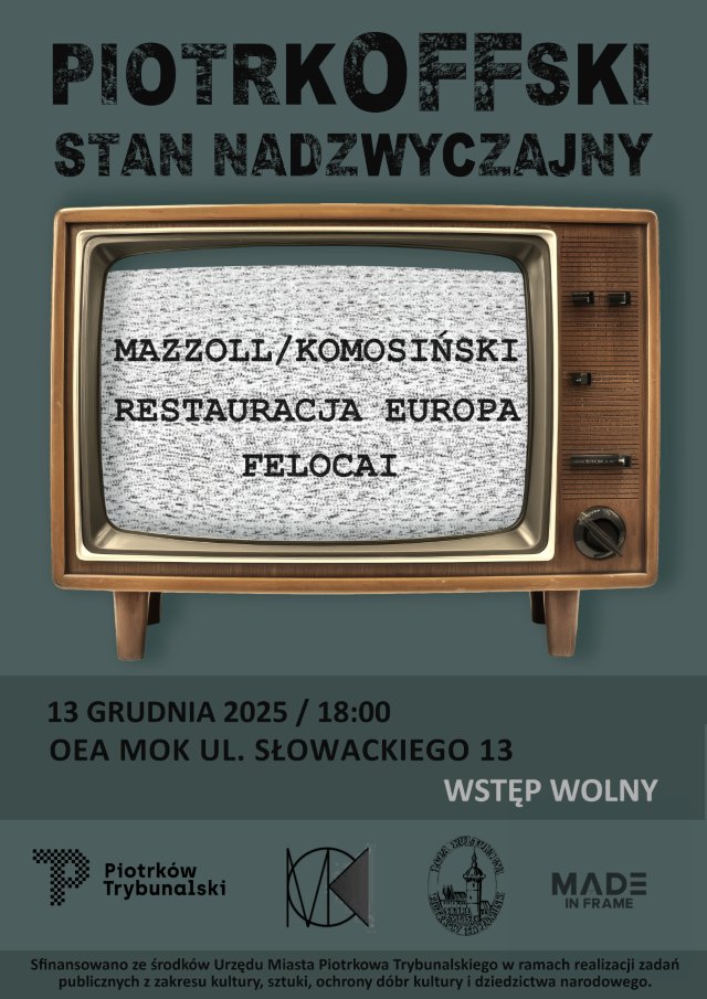 Wydarzenie artystyczne zainicjowało stowarzyszenie PiotrkOFF. Koncerty zagrają utalentowani przedstawiciele sceny lokalnej, czyli projekt Felocai oraz odważnie eksperymentujący goście z północnych stron Polski: wirtuoz klarnetu basowego Jerzy Mazzoll i kontrabasista Piotr Komosiński. Ponadto działanie performerskie przedstawi grupa Restauracja Europa – Stanisław Piotr Gajda i Marek Leszczyński.