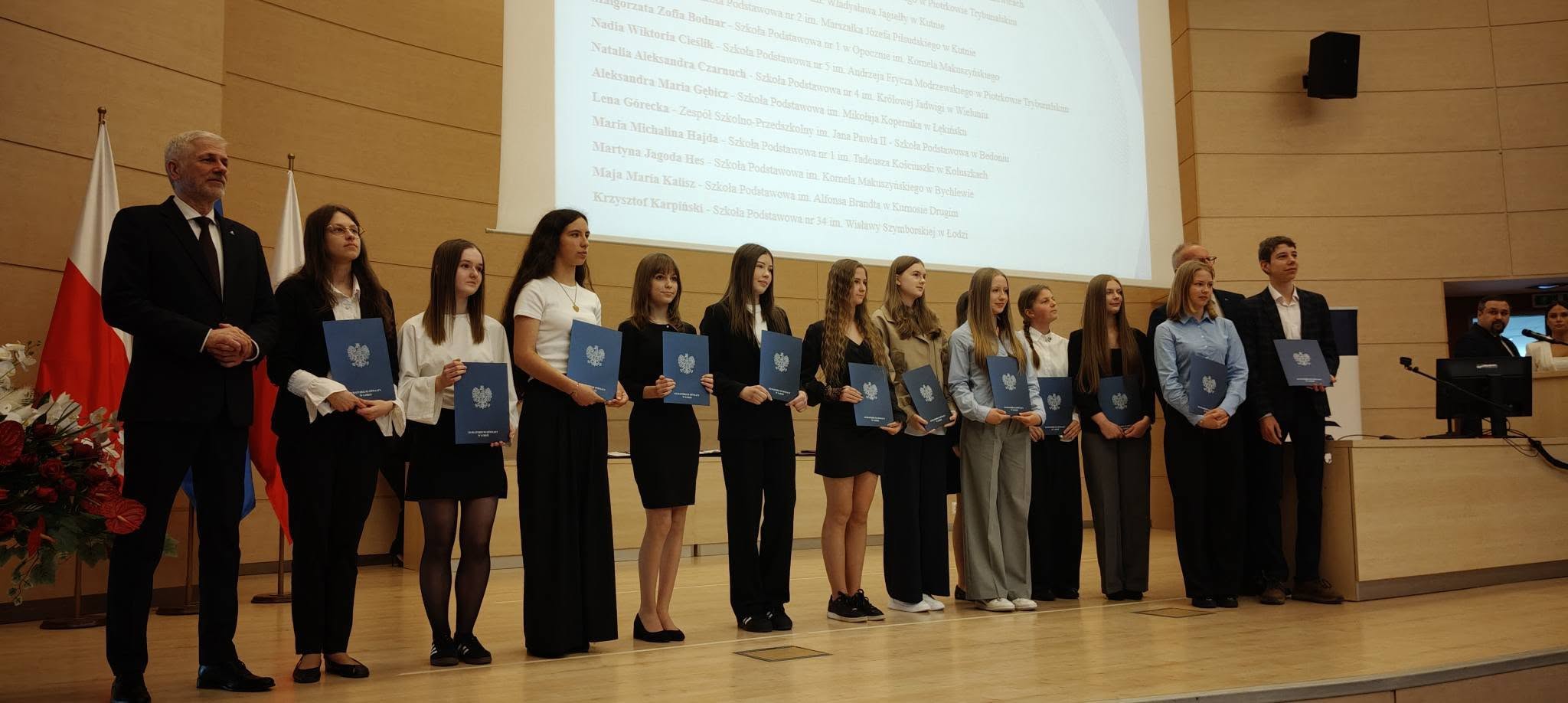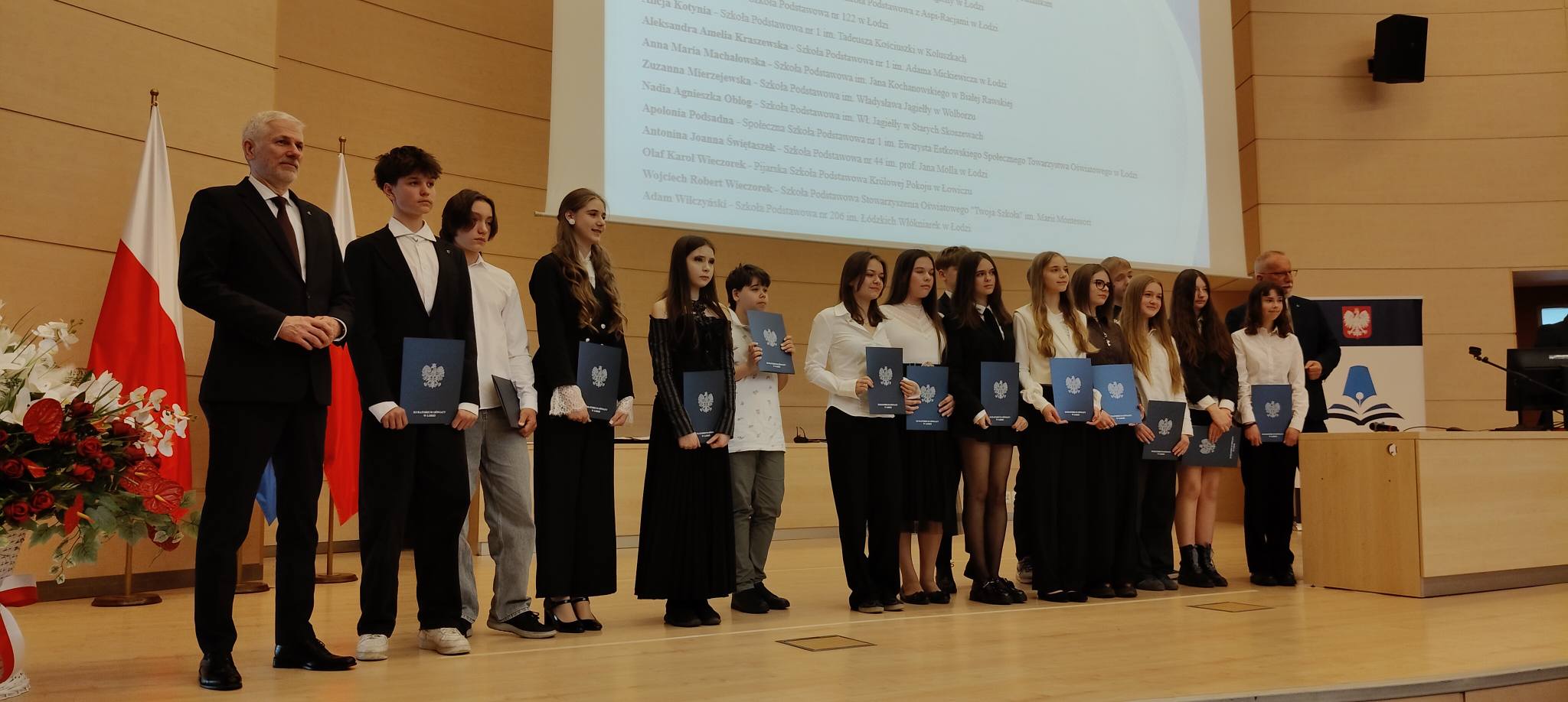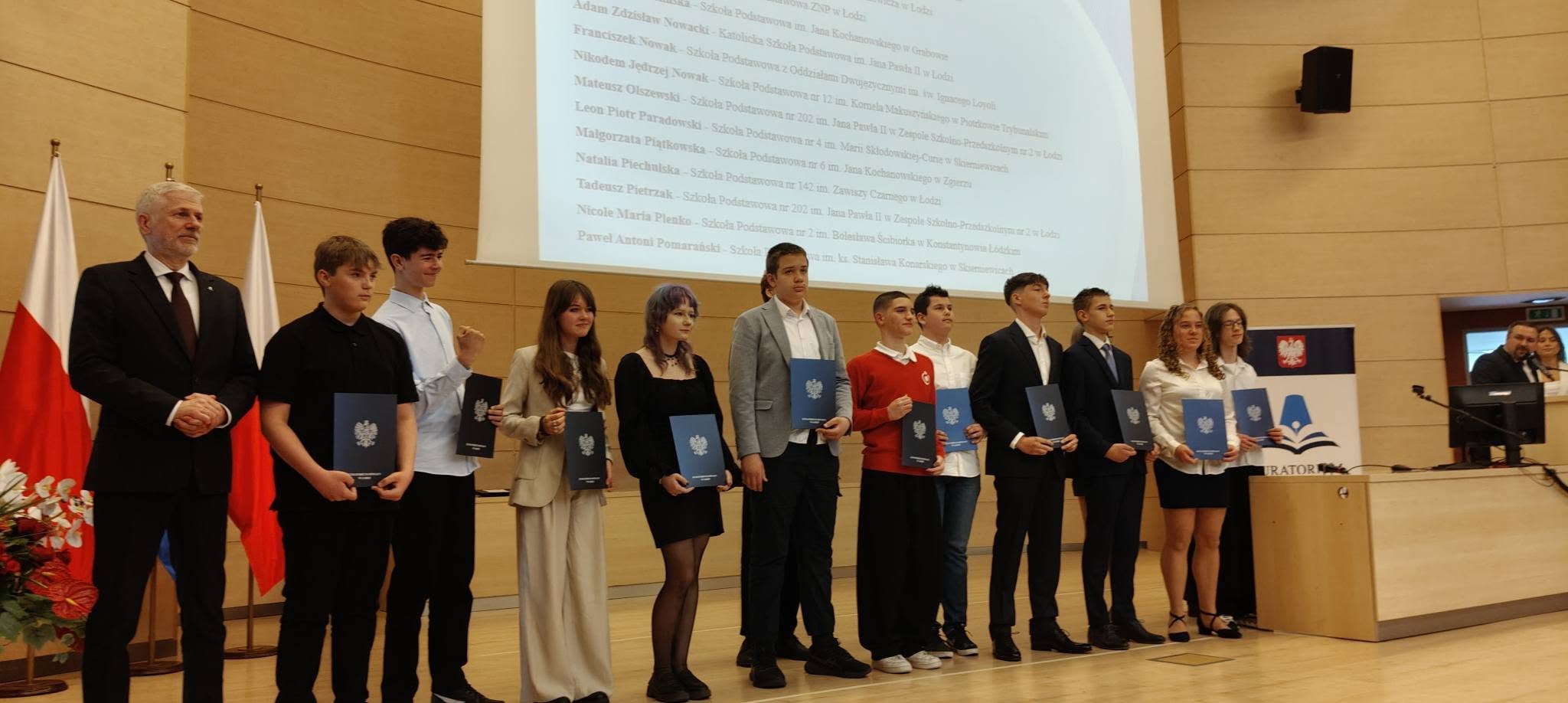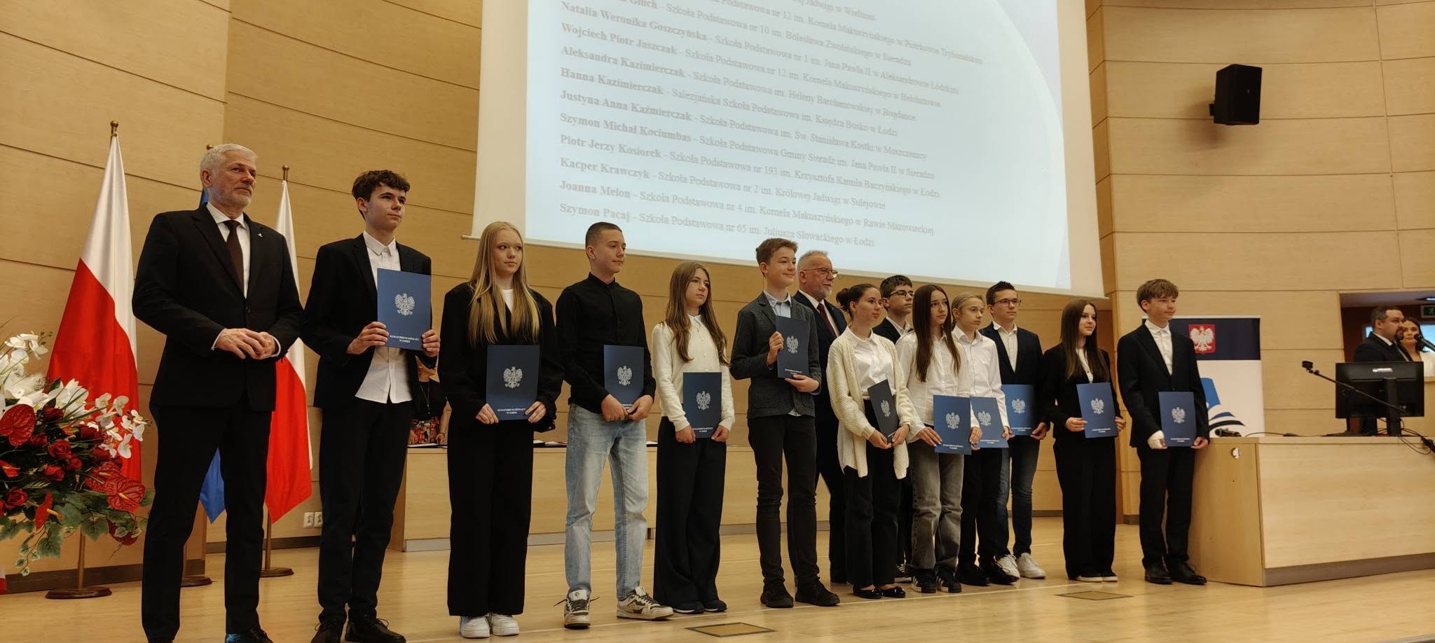 Laureaci Wojewódzkich Konkursów Przedmiotowych – w tym uczniowie piotrkowskich Szkół Podstawowych, odebrali dyplomy, nagrody i gratulacje. Podczas uroczystej gali, która odbyła się w auli łódzkiego Paragrafu, towarzyszyli im rodzice i nauczyciele.
