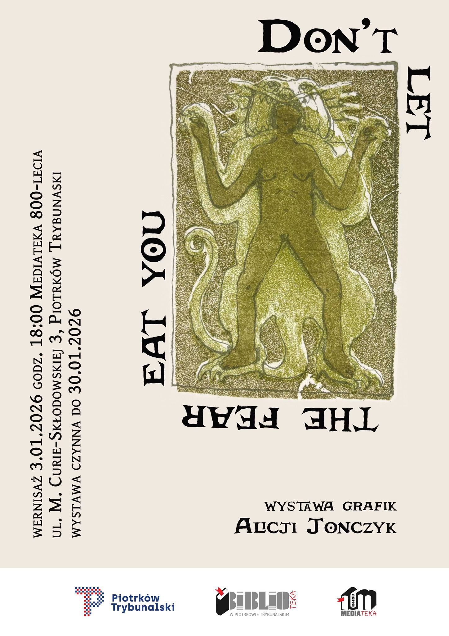 Nie macie planów na pierwszą sobotę w 2026 roku? Piotrkowska książnica zaprasza na wernisaż niezwykłej wystawy grafiki pt. „Don’t let the fear eat you” autorstwa Alicji Jonczyk.