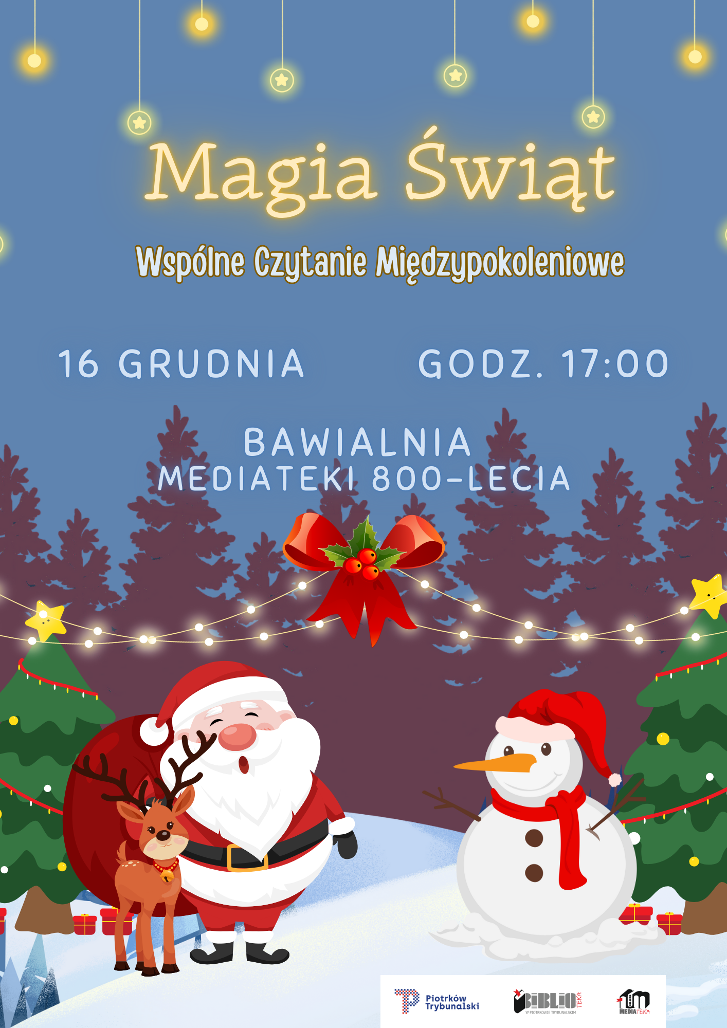 Biblioteka zaprasza dzieci, rodziców i dziadków na Wspólne Czytanie Międzypokoleniowe „Magia świąt”. Podczas spotkania wspólnie zanurzymy się w świąteczny, baśniowy klimat. Czekają nas historie, które można odkrywać razem – niezależnie od wieku.
