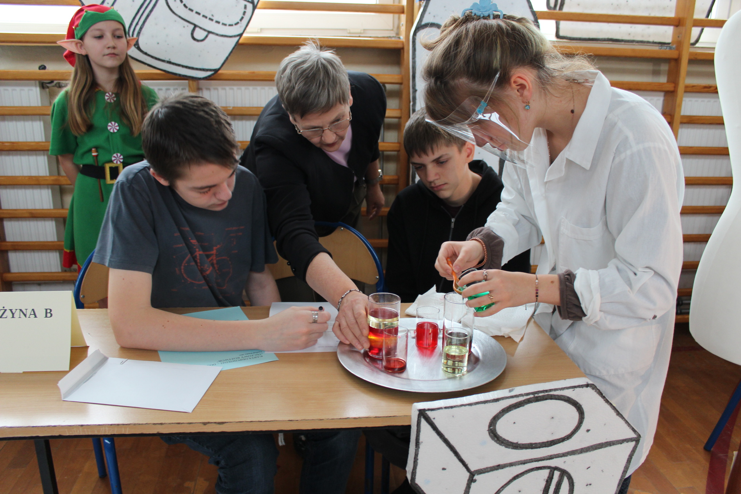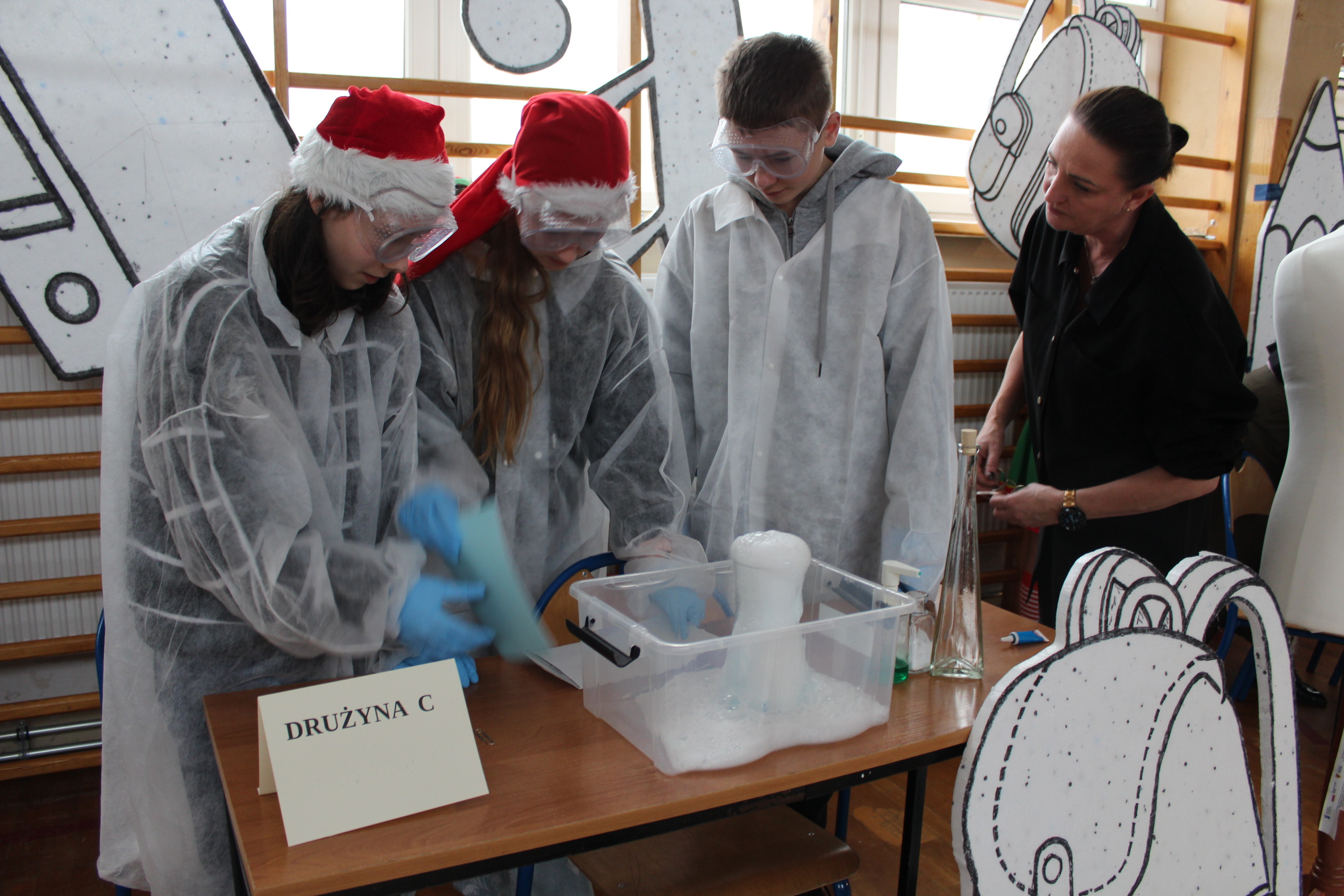 Zespoły wykonywały proste doświadczenia chemiczne.