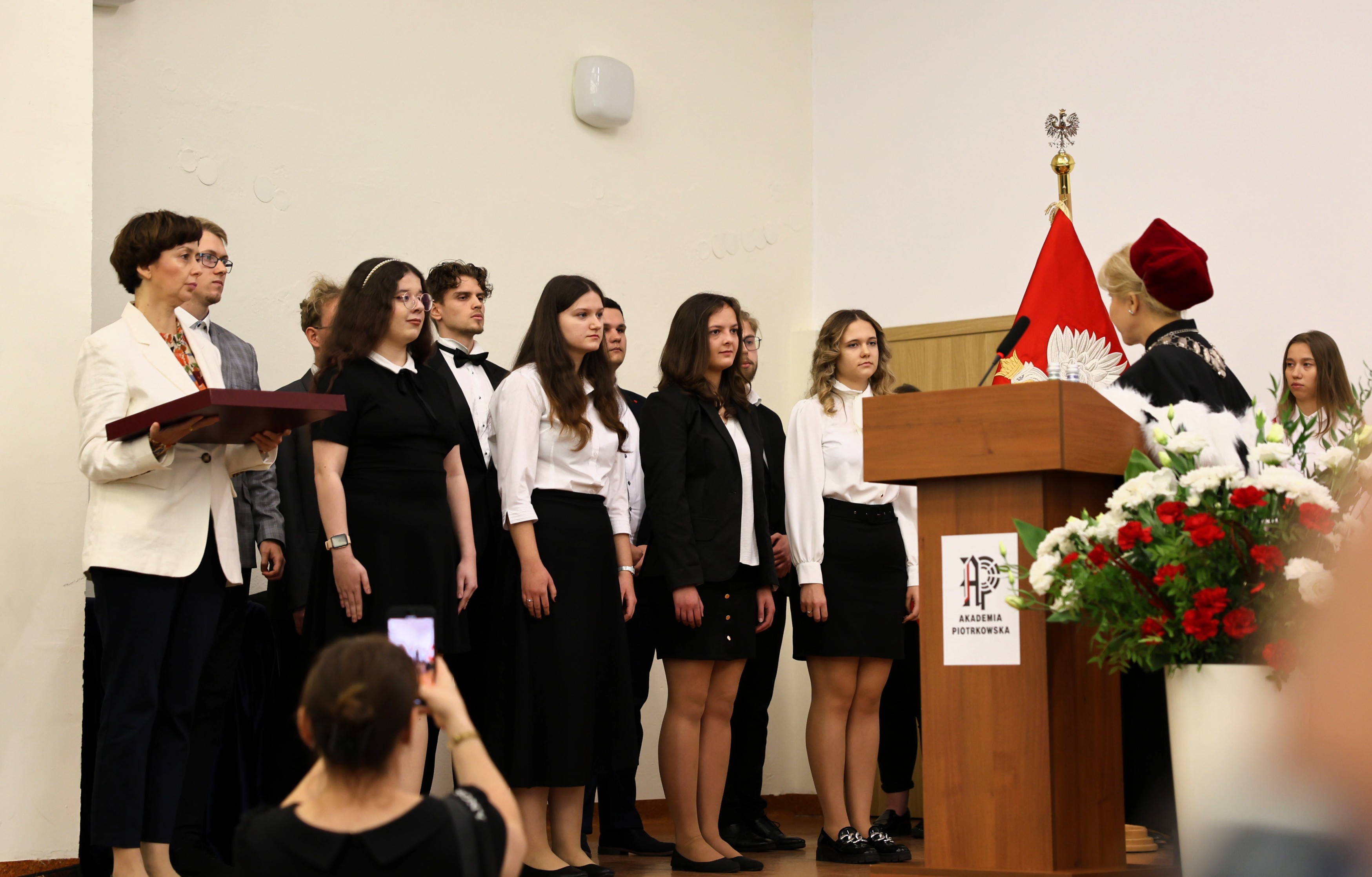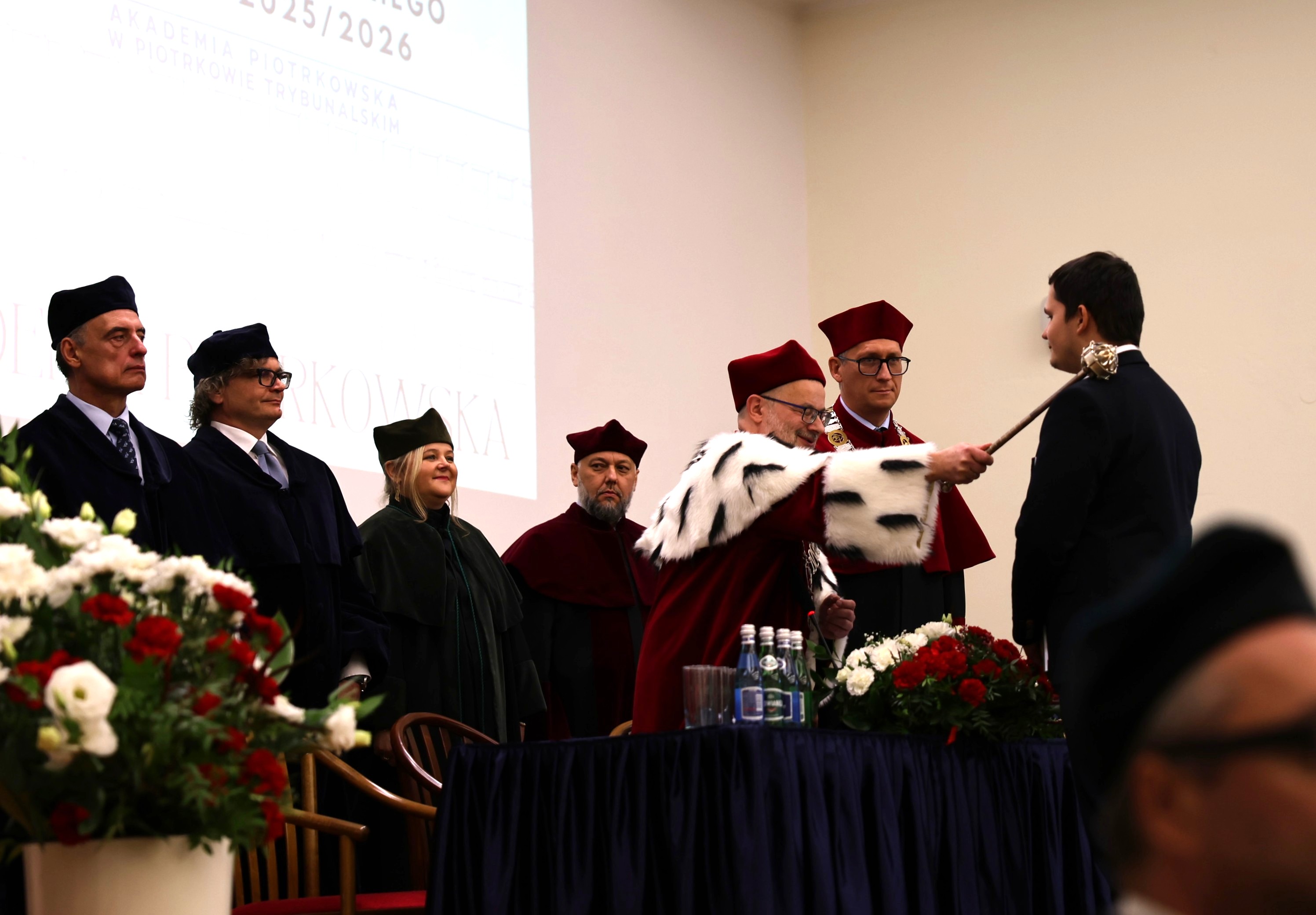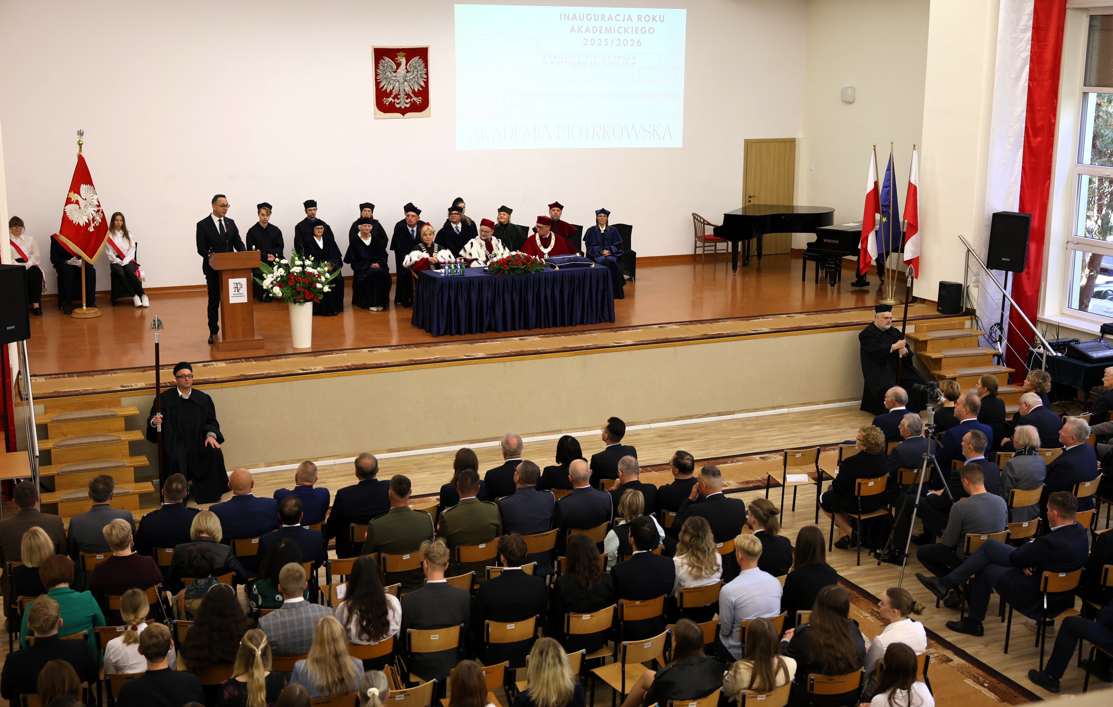 Nowy rok akademicki 2025/2026 rozpoczęło ponad 300 nowych studentów, którzy mogli wybierać spośród 12 kierunków studiów, jakie obecnie oferuje Akademia Piotrkowska. Piątkowa inauguracja roku tradycyjnie rozpoczęła się od orszaku rektorskiego i przemówienia rektora uczelni, prof. Jacka Bonarka. Studenci piewszego roku wzięli udział w uroczystej immartrykulacji – złożyli ślubowanie, otrzymali indeksy uczelni i byli pasowani na żaków. Na koniec, wspólnie z chórem akademickim, zaśpiewali hymn studencki „Gaudeamus igitur”.