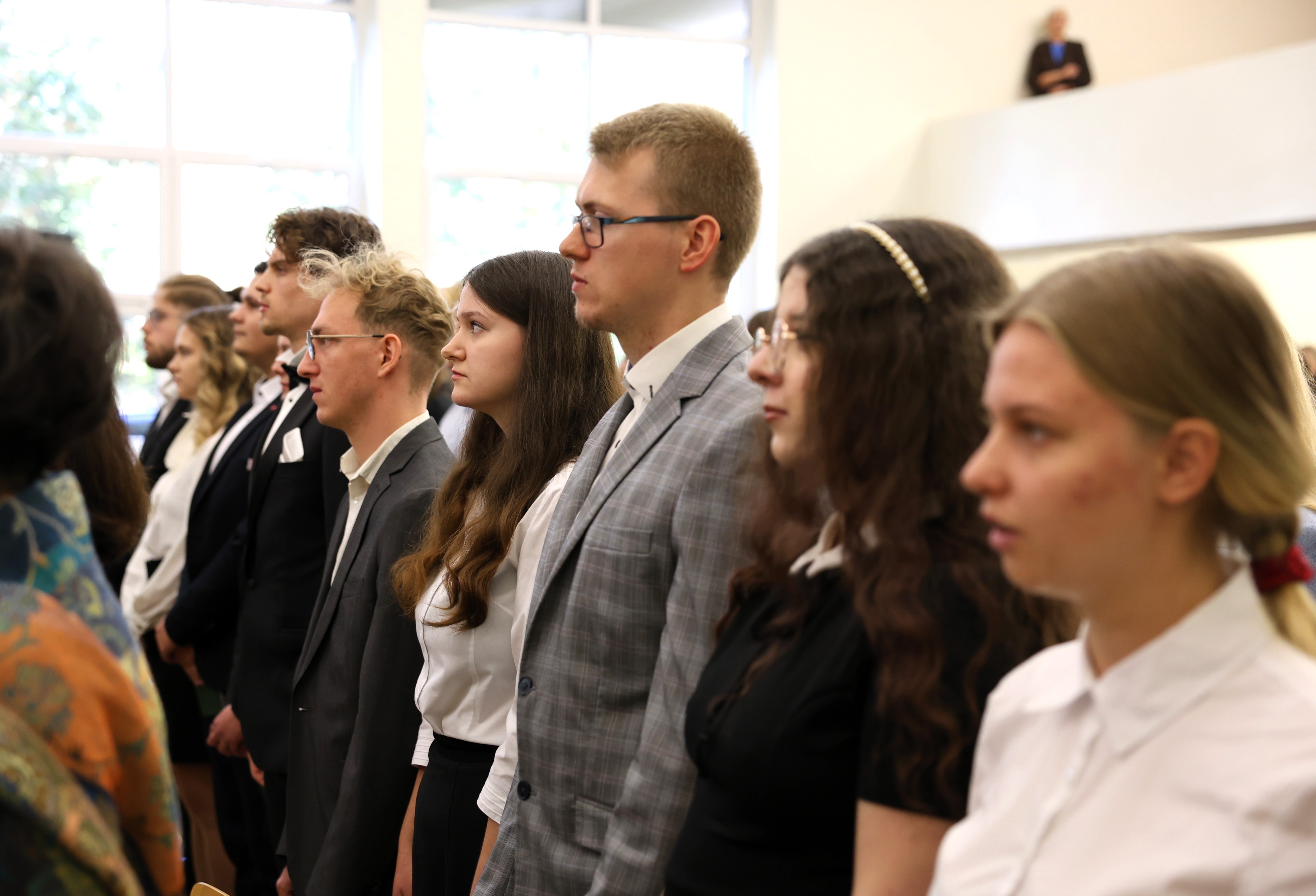 — Mam ogromny zaszczyt witać was w Akademii Piotrkowskiej, która wkracza w trzeci rok swojego istnienia — witał gości rektor Akademii Piotrkowskiej, prof. Jacek Bonarek. — Na kilku kierunkach musieliśmy zwiększyć nabory, ponieważ okazało się, że jest więcej chętnych niż miejsc. Bardzo pozywynym zaskoczeniem dla nas jest rekrutacja na kierunek administracja – w tym roku musieliśmy zwiększyć nabór ze względu na dużą liczbę chętnych. Zainteresowaniem cieszyły się także pielęgniarstwo – tutaj mamy listę zapasową, a także filologia angielska, bezpieczeństwo narodowe i historia.