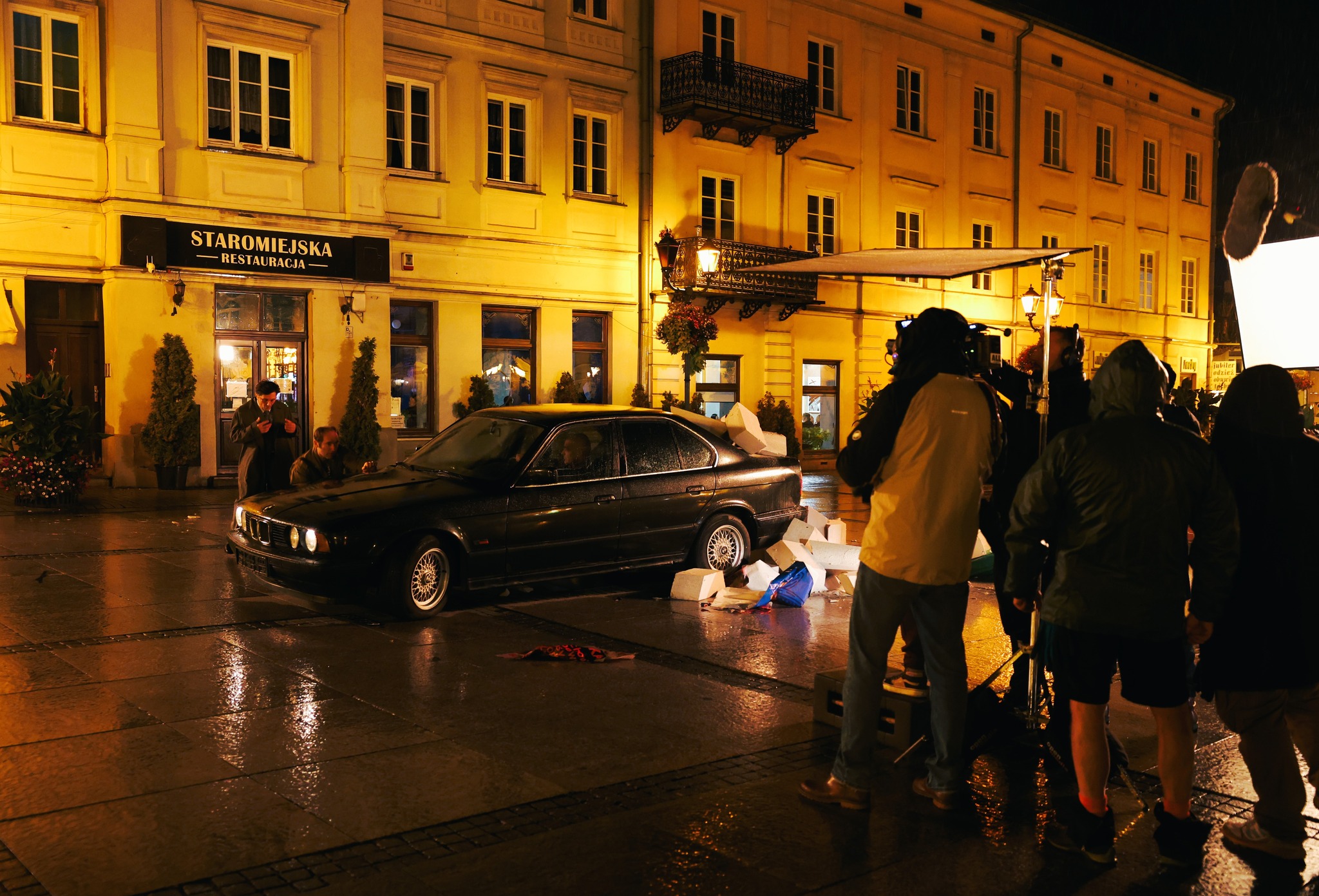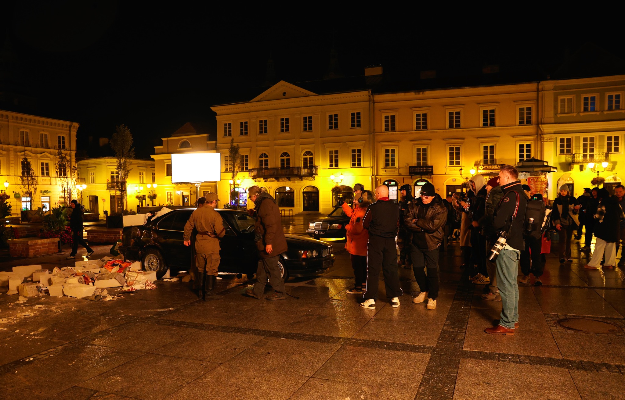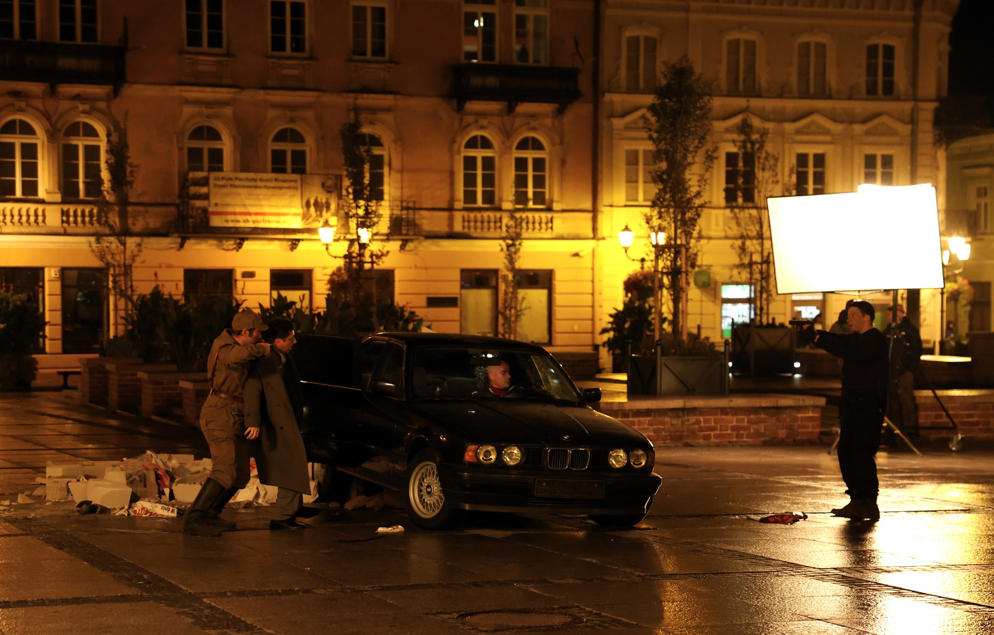 — To serial szpiegowski, pojawi się też wątek rosyjski związany z bombami atomowymi — zdradził Adrian Skwiercz, kierownik produkcji. — Sceneria w Piotrkowie jest bardzo sprzyjająca, zdecydowaliśmy więc, że dzisiejsze sceny nagramy właśnie tutaj. Zresztą jeden z naszych scenarzystów pochodzi z Piotrkowa i zaproponował nam nagranie zdjęć na piotrkowskim rynku.