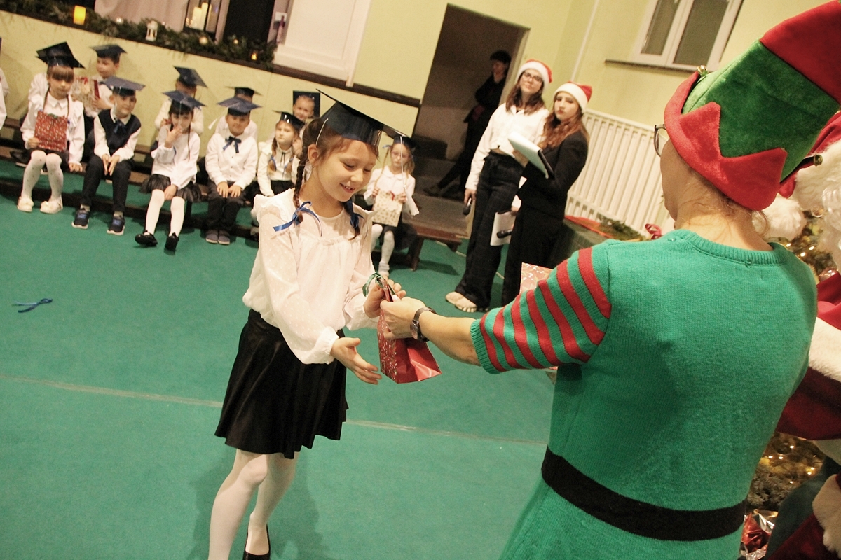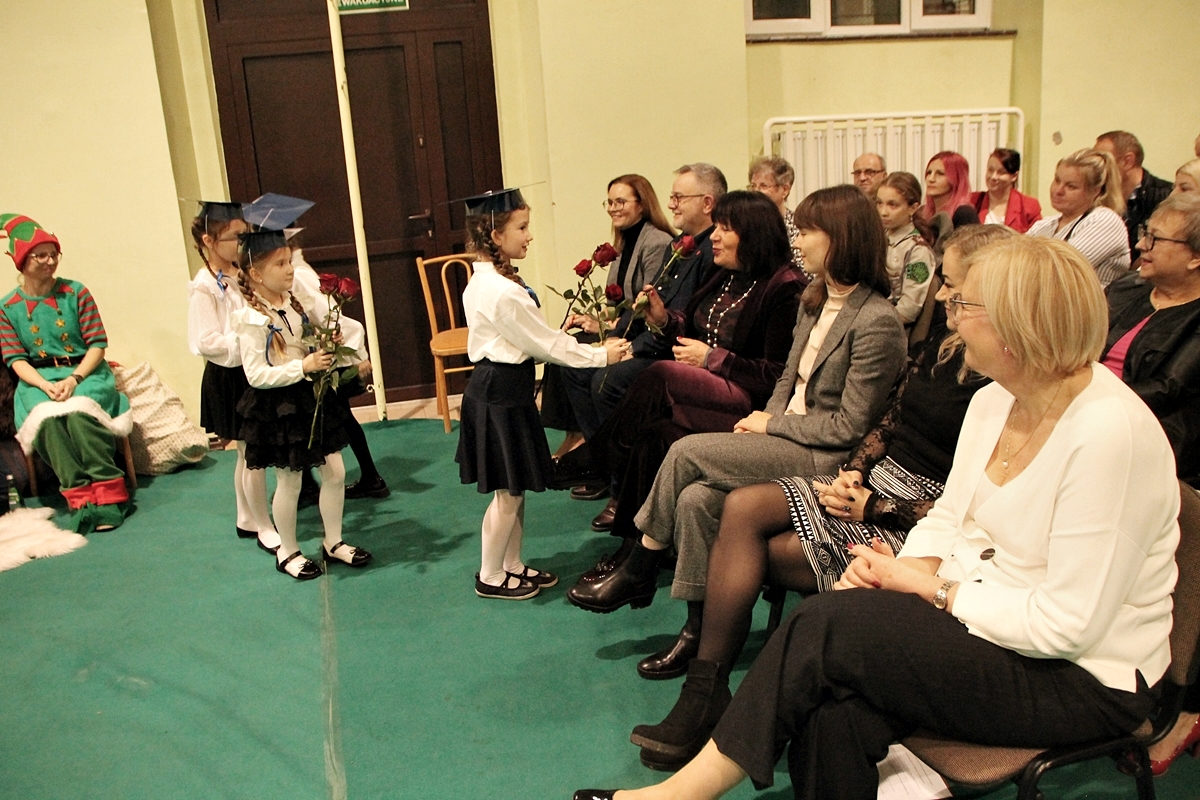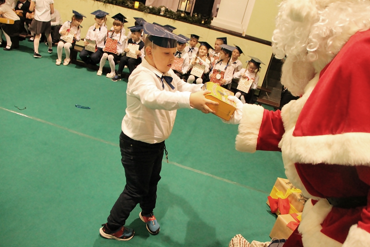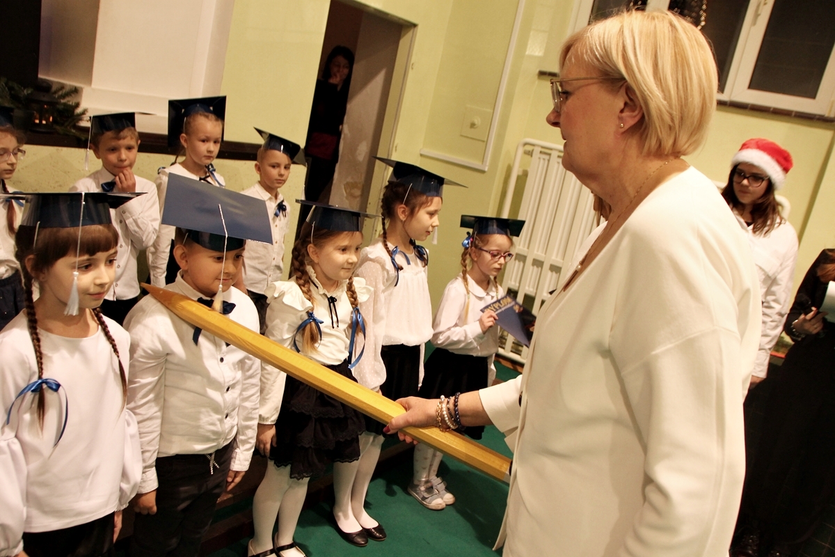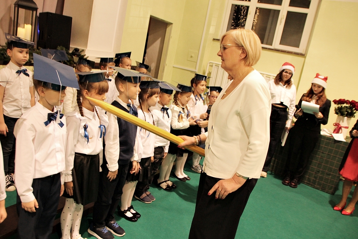 Najważniejszym momentem było uroczyste ślubowanie uczniów, a potem pasowanie każdego z pierwszaków słynnym już ogromnym ołówkiem przez dyrektorkę szkoły, Teresę Marczak. Atrakcją była obecność na sali świętego Mikołaja, który przybył specjalnie do „Jedenastki” w przededniu swojego święta. Były prezenty, przytulasy i oczywiście możliwość zrobienie sobie zdjęcia z wyjątkowym gościem.