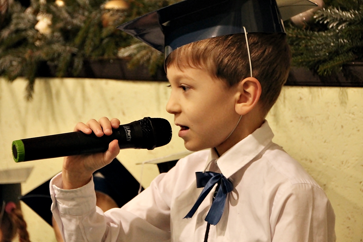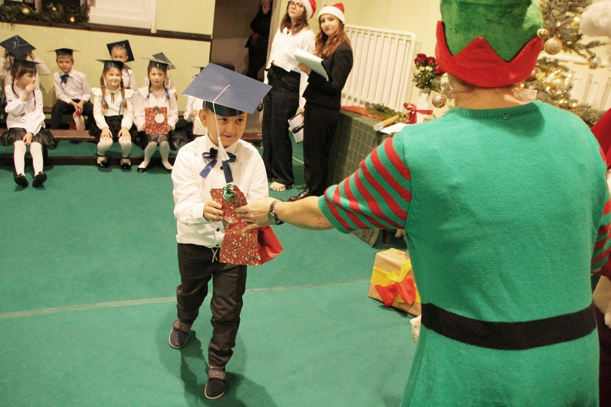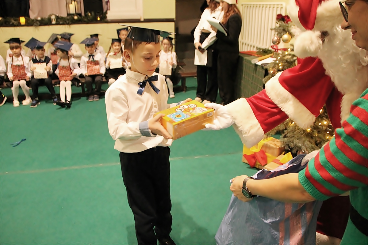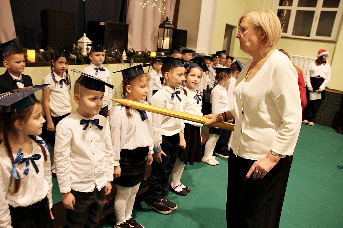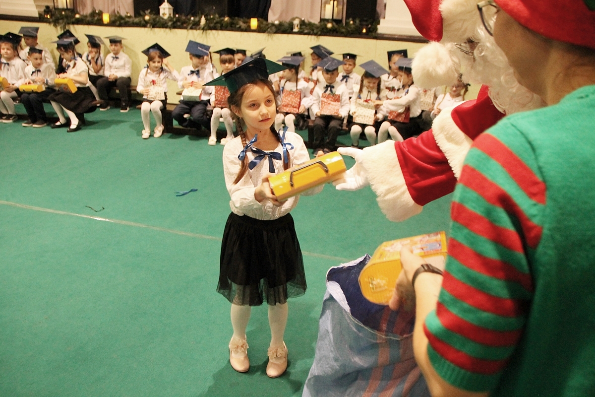 Najważniejszym momentem było uroczyste ślubowanie uczniów, a potem pasowanie każdego z pierwszaków słynnym już ogromnym ołówkiem przez dyrektorkę szkoły, Teresę Marczak. Atrakcją była obecność na sali świętego Mikołaja, który przybył specjalnie do „Jedenastki” w przededniu swojego święta. Były prezenty, przytulasy i oczywiście możliwość zrobienie sobie zdjęcia z wyjątkowym gościem.