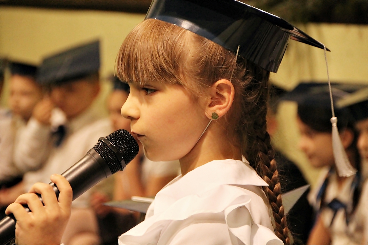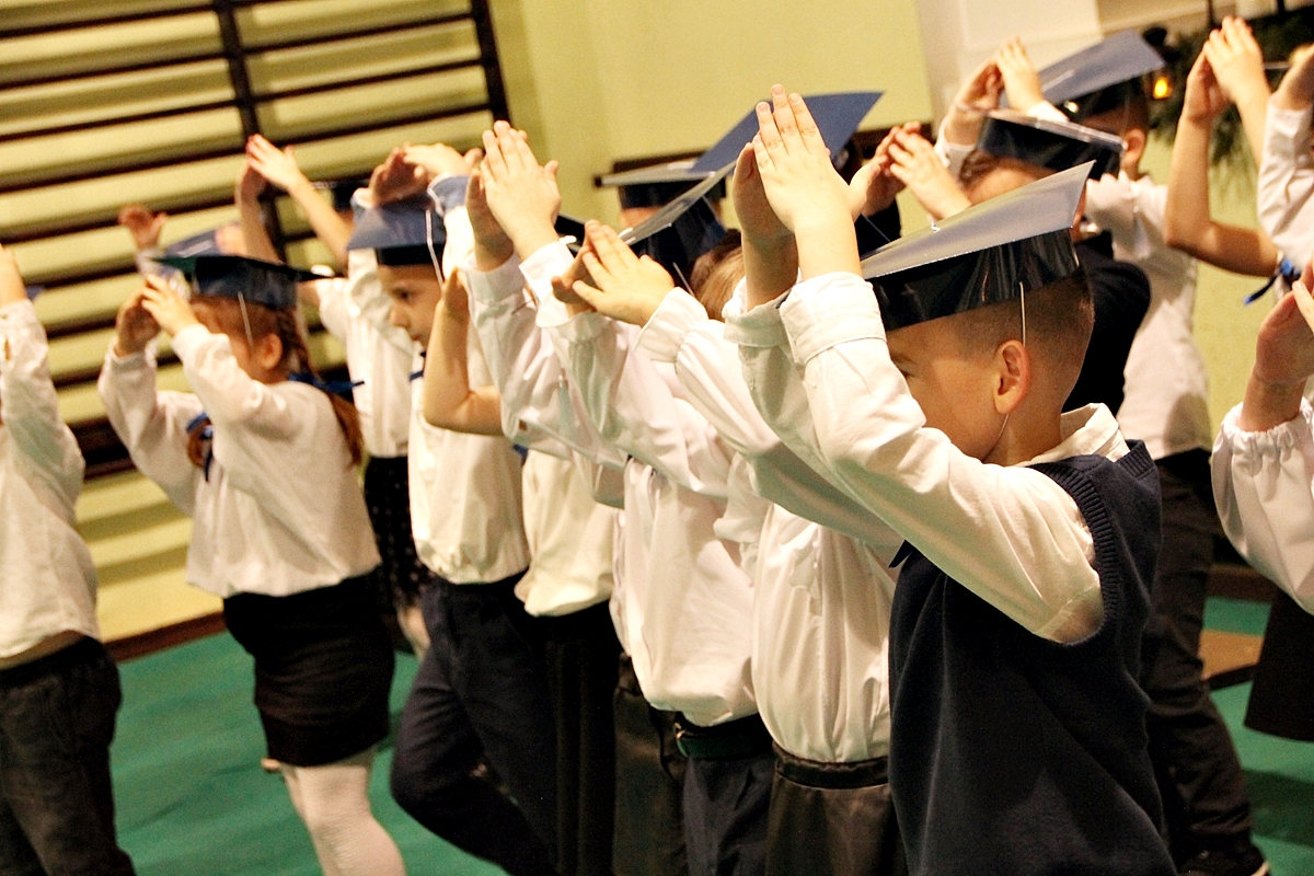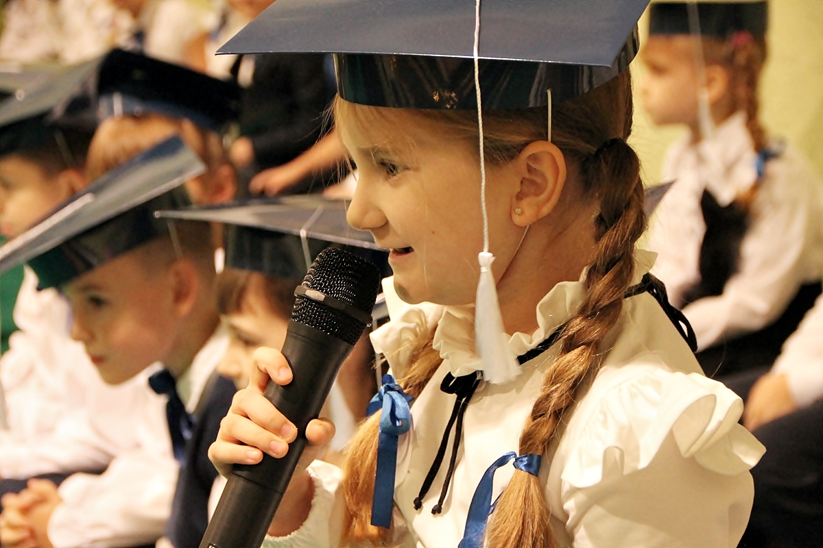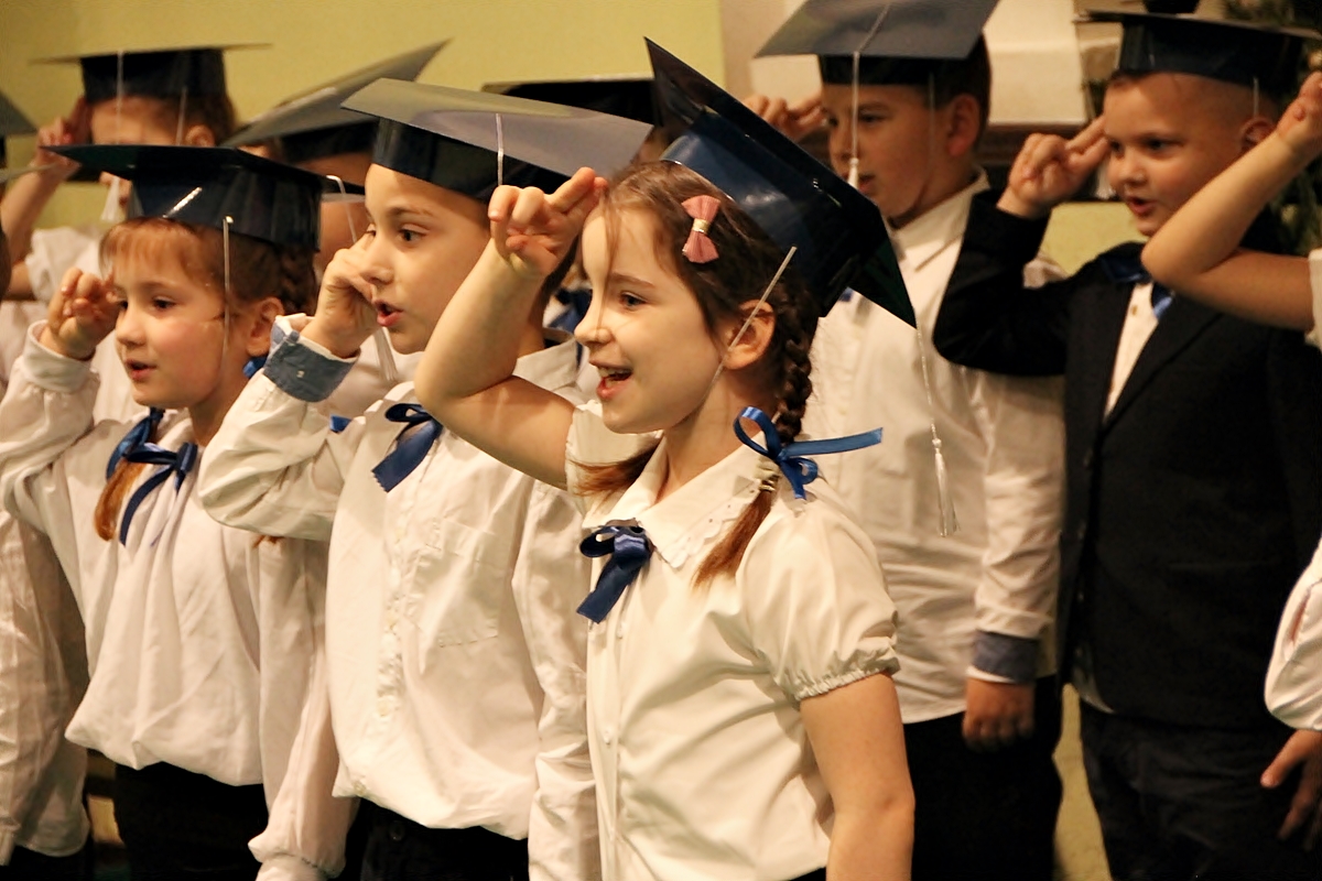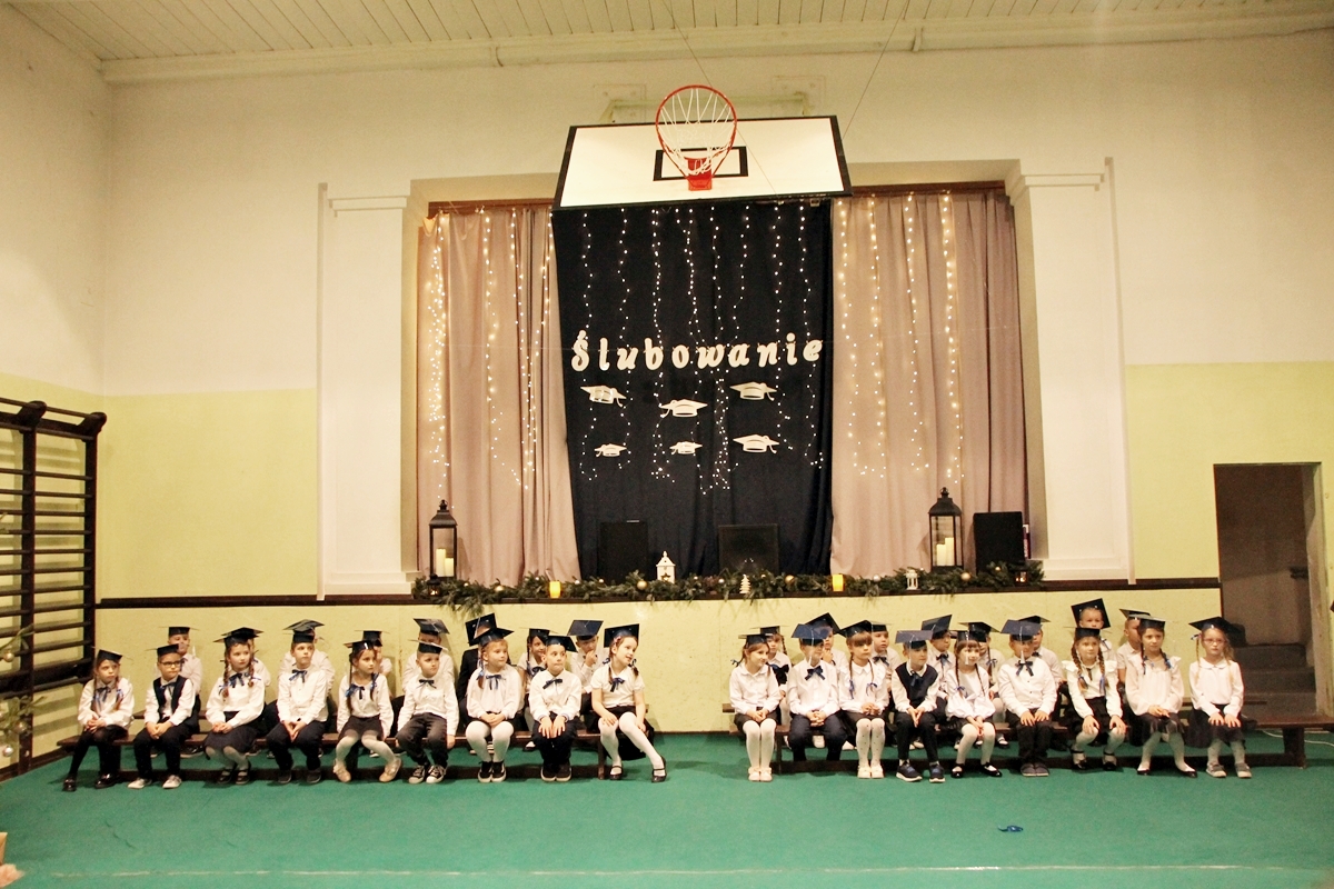 Najważniejsze jednak tego dnia były dzieciaki z dwóch klas pierwszych, które pod czujnym okiem swoich wychowawczyń, jeszcze przed ślubowaniem i pasowaniem, musiały się wykazać wiedzą i umiejętnościami „sprawdzanymi” przez prowadzące całą uroczystość uczennice klas ósmych. Pierwszaki popisywały się też swoimi wokalnymi umiejętnościami, a czas zebranym umilały występy szkolnej grupy tanecznej.