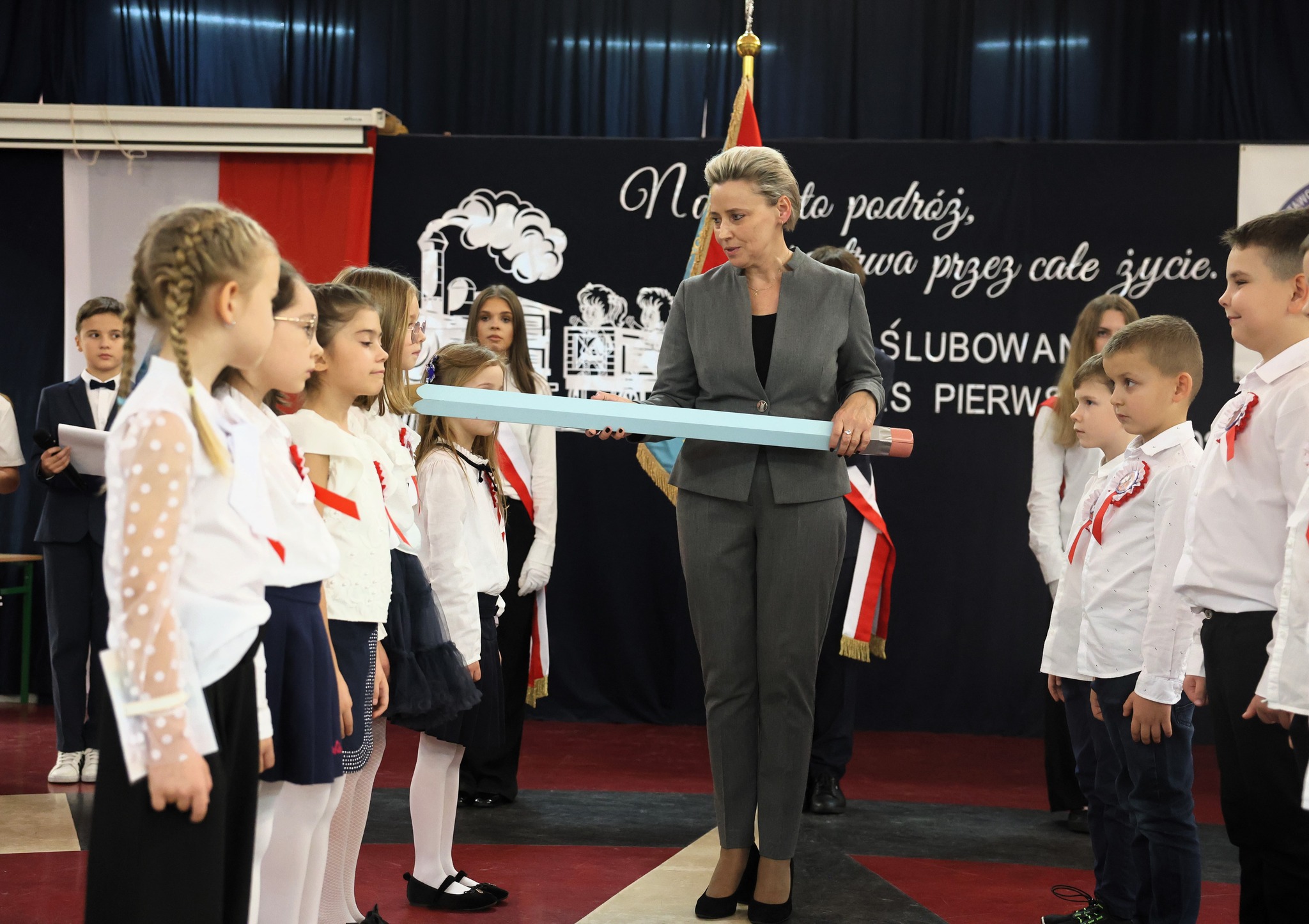 — Kochani, przed wami rok pełen nowych, wspaniałych doświadczeń. Życzę wam sukcesów w nauce, wielu nowych przyjaciół i samych radosnych chwil. Uczcie się pilnie i zawsze godnie reprezentujcie naszą szkołę — mówiła do pierwszoklasistów Katarzyna Błażejewska. Zwróciła się też z ważnym apelem do rodziców. — Szanowni rodzice, wasze pociechy rozpoczynają szkolną przygodę. Pierwszoklasista odczuwa wiele emocji. To wy, rodzice, jesteście najbliżej swoich dzieci. To wy musicie wspierać ich na co dzień. Rozmawiajcie z dzieckiem na temat ich przeżyć, wspólnie odrabiajcie prace domowe. Dziecko musi wiedzieć, że interesuje was jego szkolne życie, i że zawsze może liczyć na waszą pomoc — dodała.