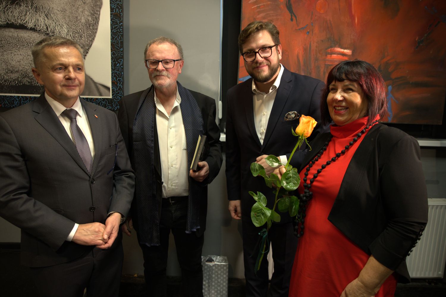 W tej szczególnej chwili piotrkowskiemu artyście towarzyszyli również wiceprezydent Piotr Kulbat, najbliższa rodzina, przyjaciele i artyści, z którymi wspólnie tworzy piotrkowską kulturę – m.in. Andrzej Hoffman, Gordian Piec i Bronisław Brylski.