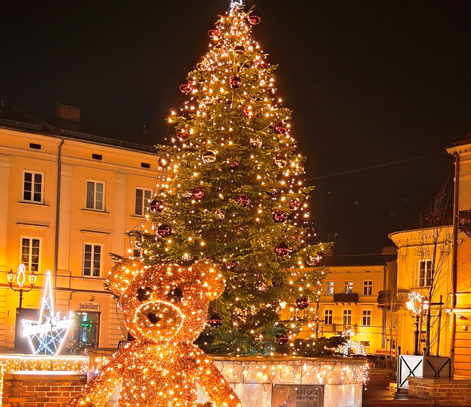 Na Rynku Trybunalskim stanęła imponująca, ponad 10-metrowa jodła kaukaska, która od soboty zachwyca swoją świąteczną dekoracją. Iluminacje rozświetlają także piotrkowskie ulice, które tworzą spójną, zimową scenerię i zapraszają do spacerów.