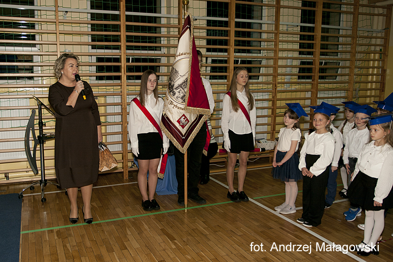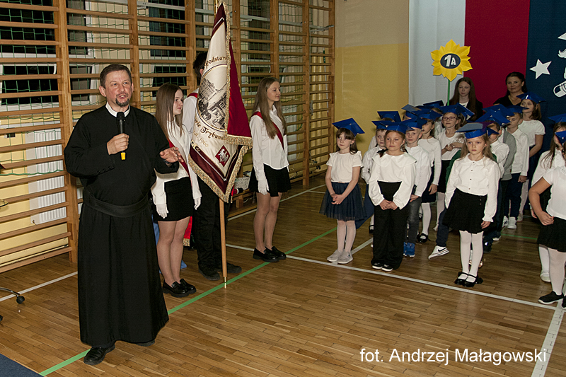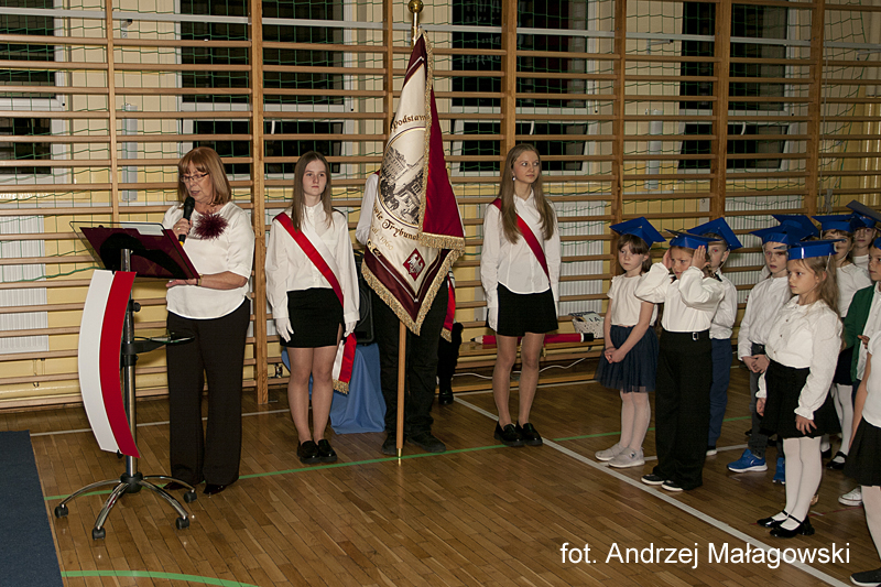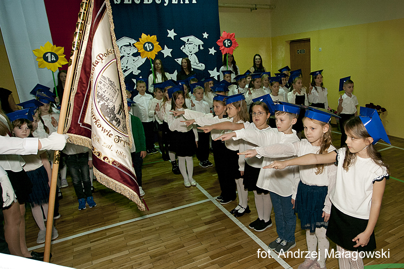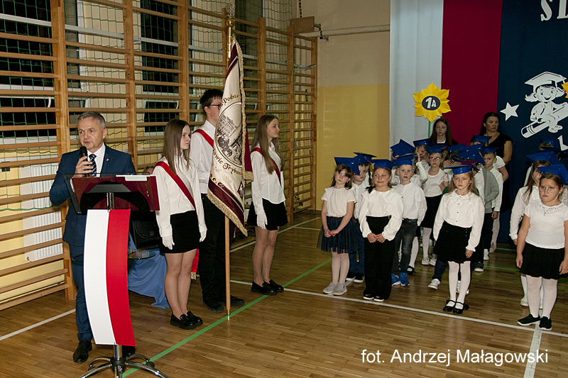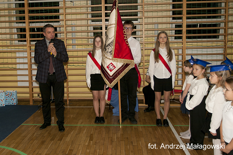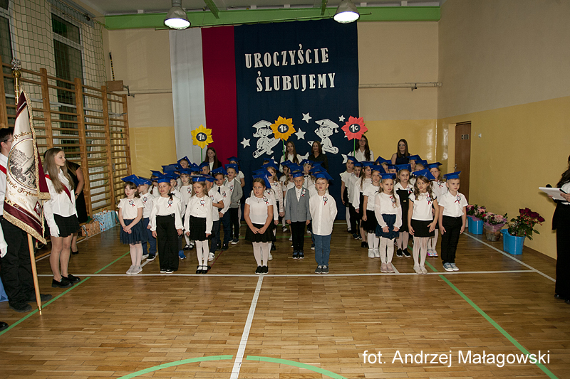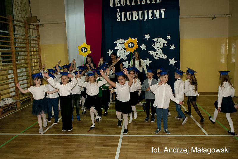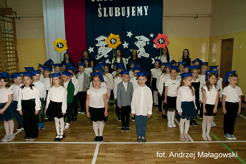 Najmłodsi uczniowie, bohaterowie tego dnia, zostali uroczyście pasowani na uczniów przez dyrektorkę szkoły Magdalenę Majos. Z okazji ślubowania zaprezentowali przygotowany przez siebie program artystyczny, który spotkał się z ogromnym uznaniem publiczności. Podczas całej ceremonii wspierali ich starsi koledzy i koleżanki z klas ósmych.