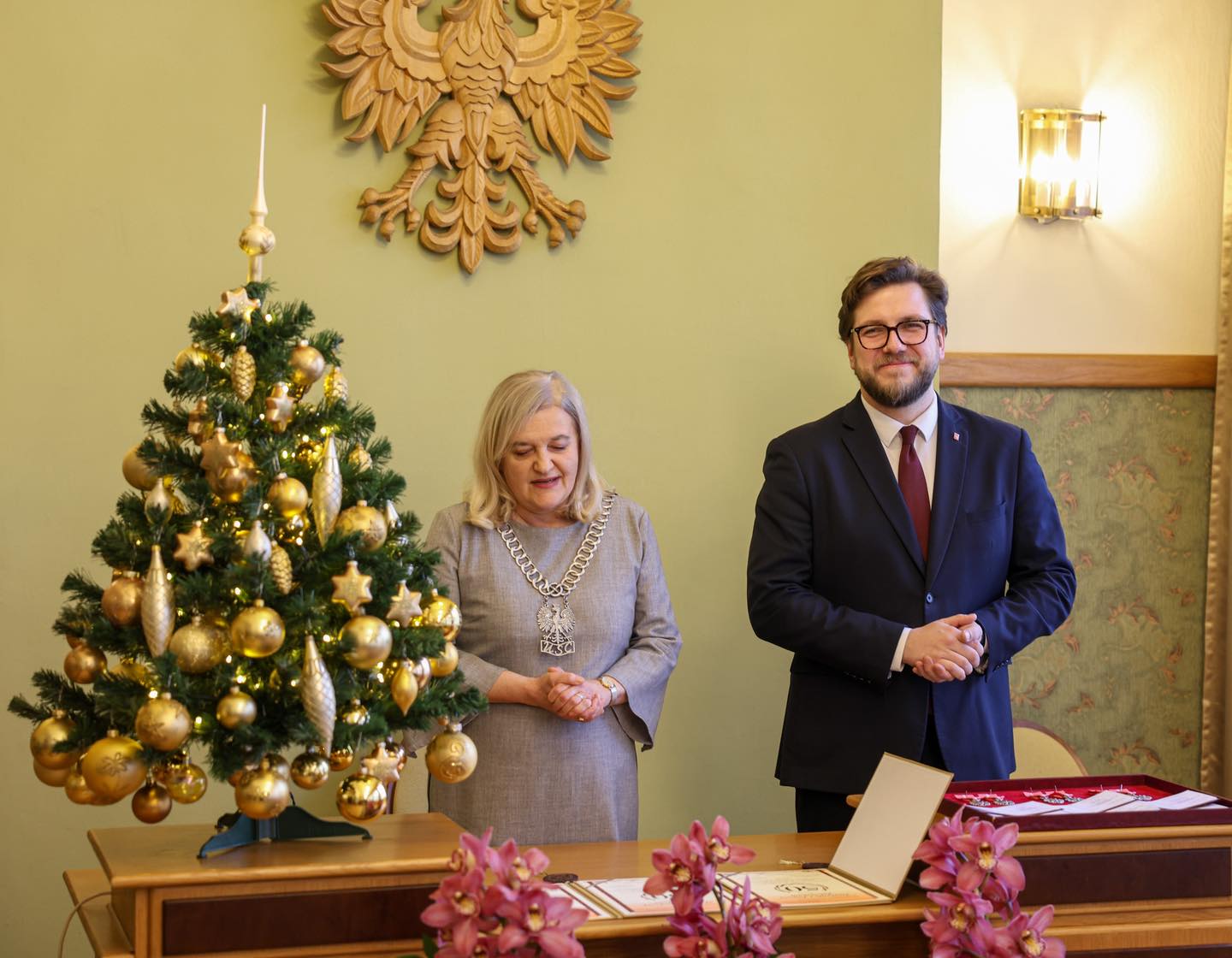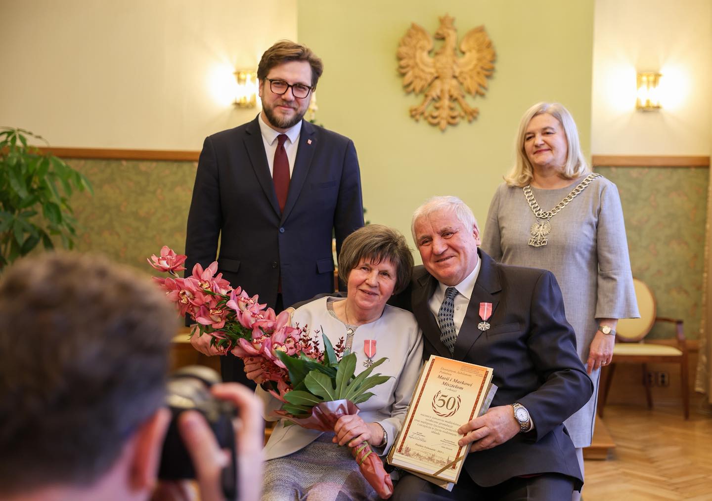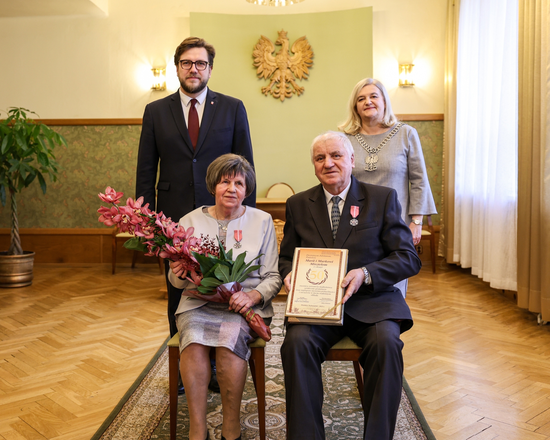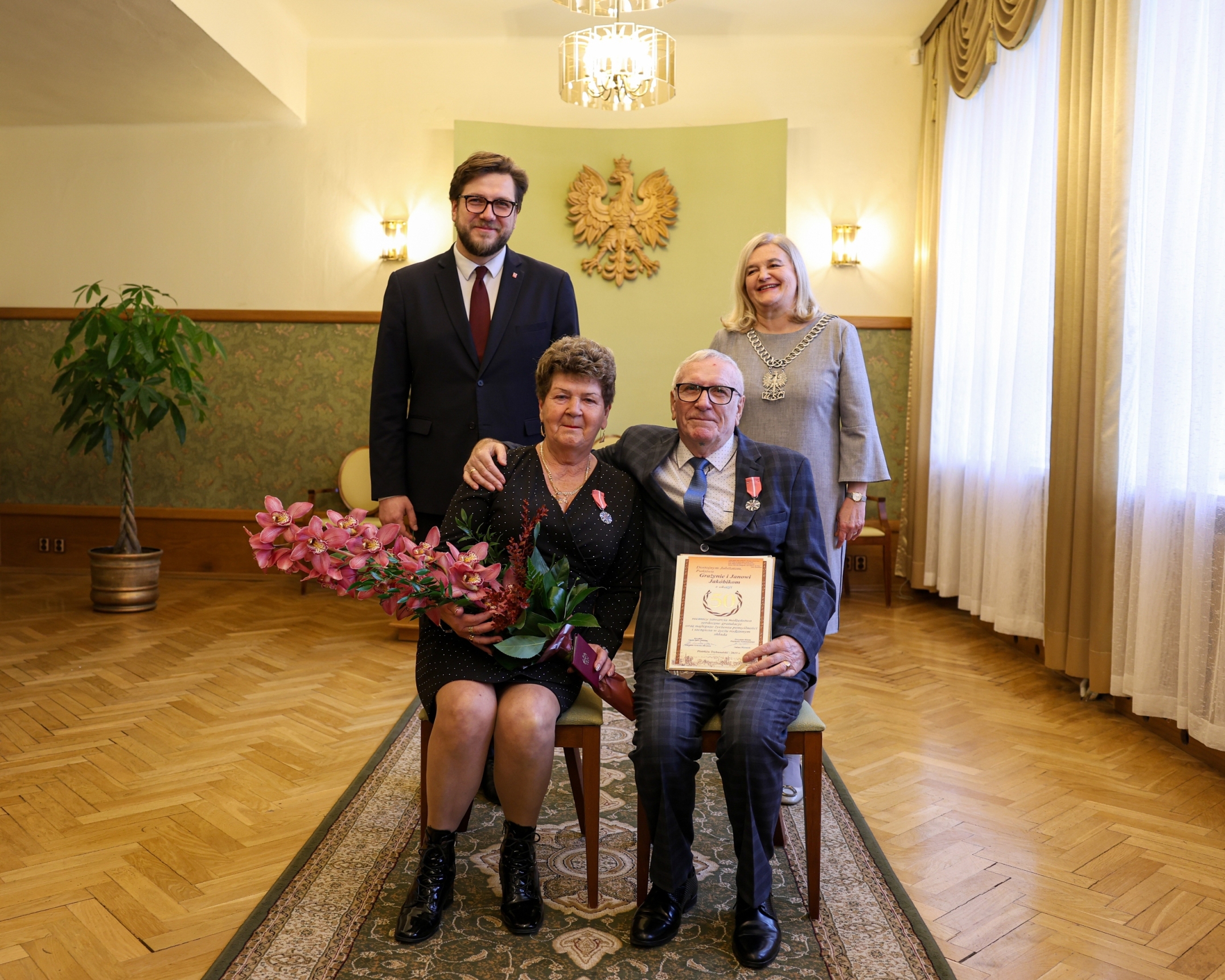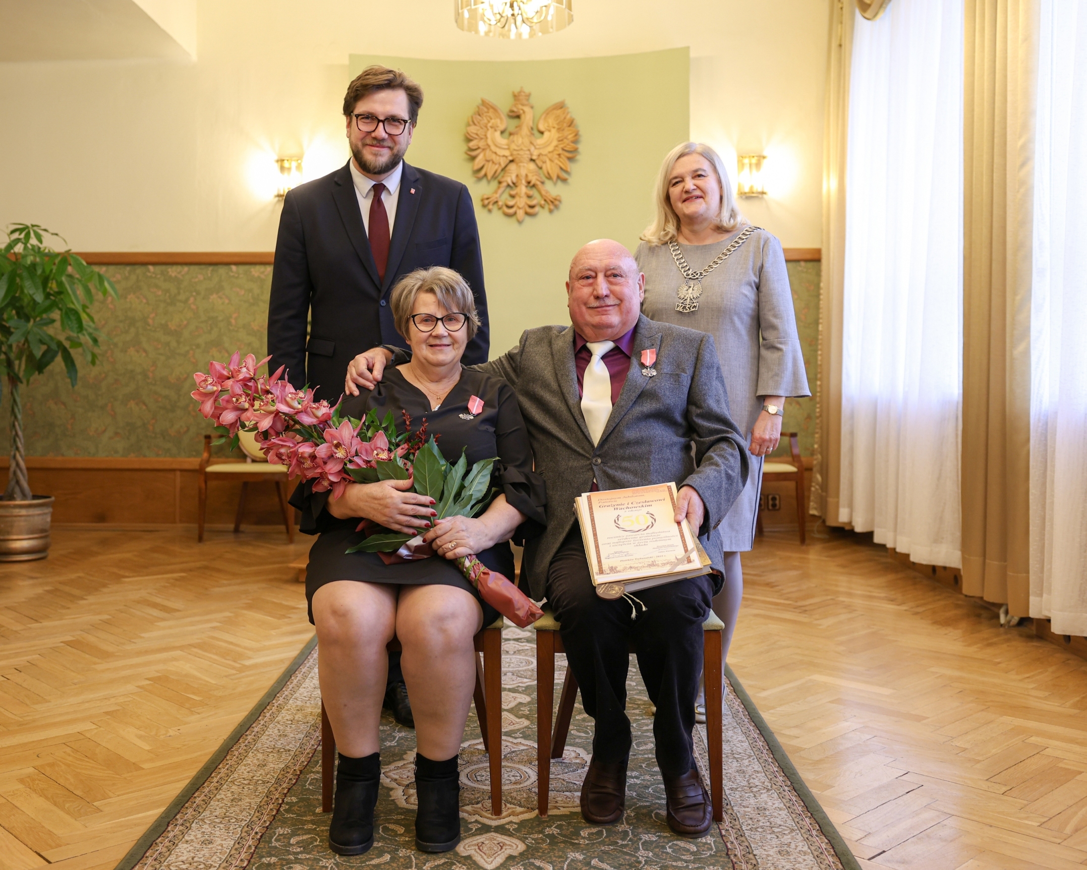 W trakcie uroczystości jubilaci spotkali się z prezydentem miasta, Juliuszem Wiernickim. Prezydent złożył małżonkom serdeczne życzenia i gratulacje. Wręczył także Medale za Długoletnie Pożycie Małżeńskie, nadawane przez Prezydenta RP. Jubilaci otrzymali też listy gratulacyjne oraz kwiaty, a na koniec uroczystości pozowali do pamiątkowych zdjęć.
