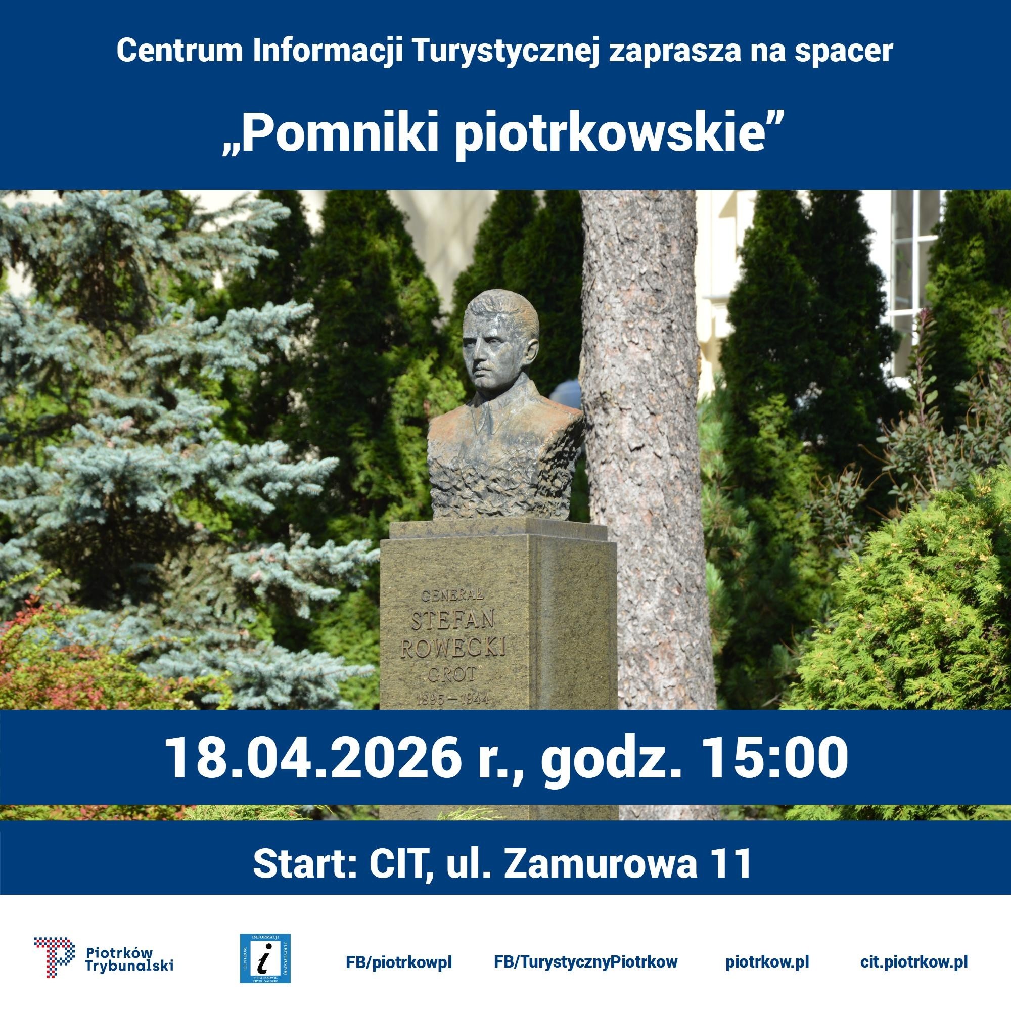 W najbliższą sobotę odbędzie się kolejny spacer z Centrum Informacji Turystycznej. Tym razem podążymy szlakiem najważniejszych piotrkowskich pomników. Nie zabraknie ciekawych historii.