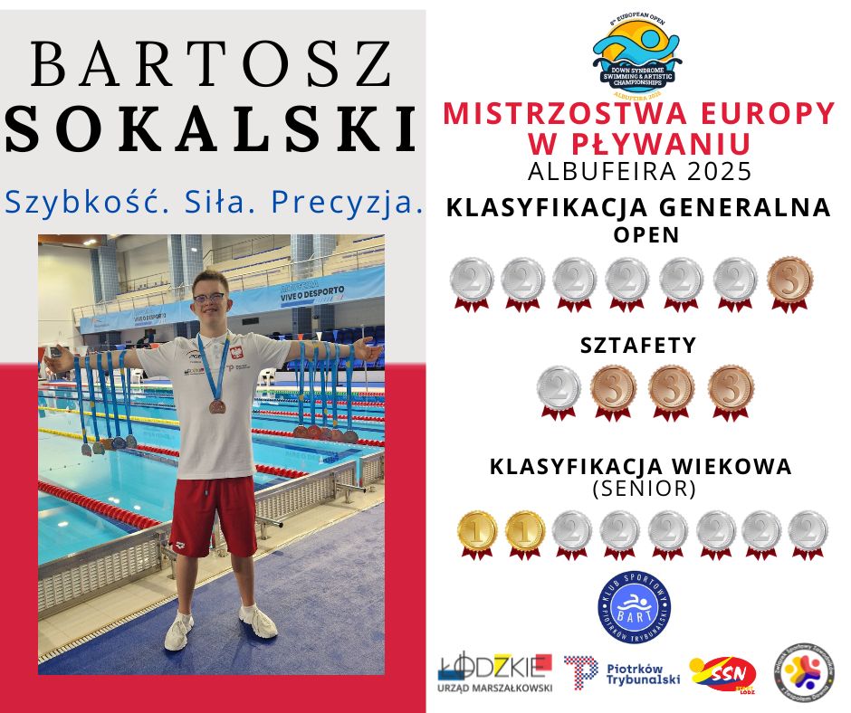 Bartosz Sokalski wielokrotnym wicemistrzem Mistrzostw Europy w pływaniu w Portugalii. Podczas 8. European Down Syndrome Swimming Championships 2025 młody piotrkowianin zdobył medale we wszystkich startach.