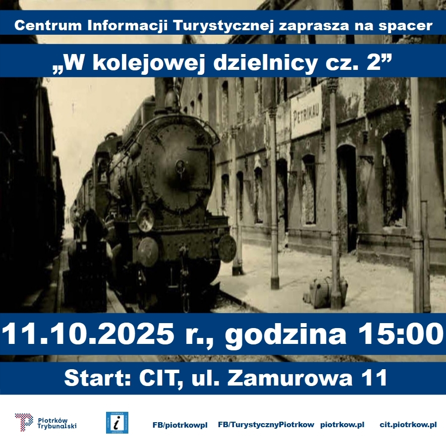 Już w najbliższą sobotę (11 października) o godzinie 15:00 zapraszamy na spacer związany historią kolejnictwa w Piotrkowie Trybunalskim. Razem z przewodnikiem zapraszamy na drugą część spaceru, podczas którego przypomniane zostaną kolejowe tradycje Piotrkowa, a także rola kolei i kolejarzy w życiu miasta.
